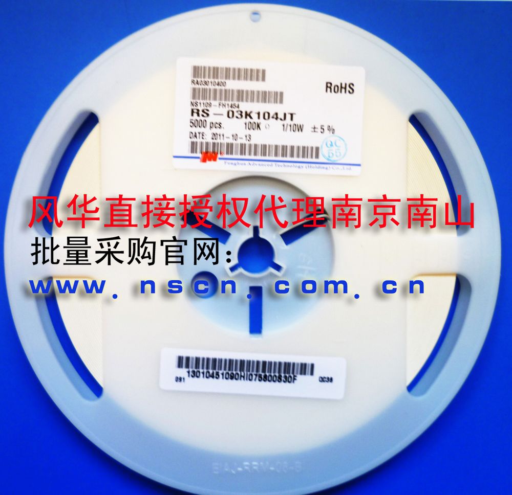 風(fēng)華高科(FH)代理商南京南山半導(dǎo)體有限公司代理供應(yīng)風(fēng)華高科(FH)常規(guī)貼片電阻全系列產(chǎn)品。風(fēng)華貼片電阻規(guī)格型號(hào)RS-03K104JT是阻值100KRR0603封裝J(5%)精度的常規(guī)型號(hào)。南京南山半導(dǎo)體在南京總部和深圳備有大量現(xiàn)貨庫存,歡迎撥打風(fēng)華代理南京南山全國咨詢服務(wù)電話或咨詢?cè)诰€客服。