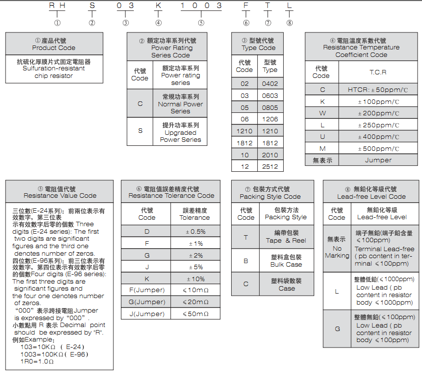 1、RH:抗硫化厚膜貼片電阻的產(chǎn)品代號;