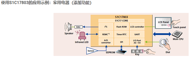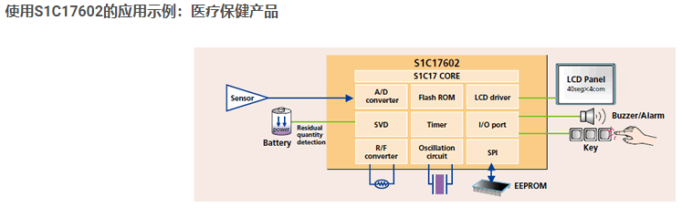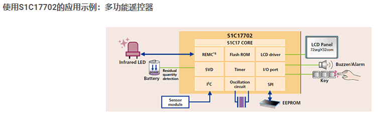 16位微控制器之S1C17000 / 500系列,這是一款低功耗16位微控制器,集成了ROM,RAM,遠程控制器電路,各種I / F和定時器功能。它適用于便攜式設備內(nèi)置的傳感器系統(tǒng)。
