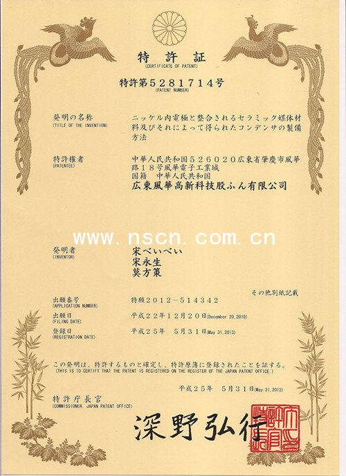 風(fēng)華高科在日本申請(qǐng)首件陶瓷貼片電容新材料制造專(zhuān)利