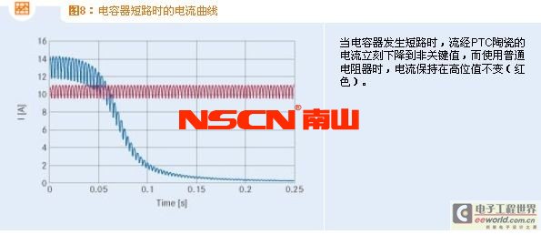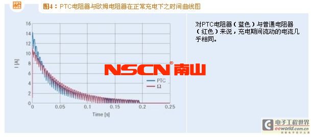 在這兩種情況下,充電電流的時(shí)間曲線幾乎相同。PTC陶瓷與固定電阻在電流特性方面的細(xì)微差別的產(chǎn)生原因是: