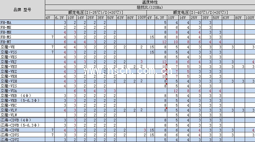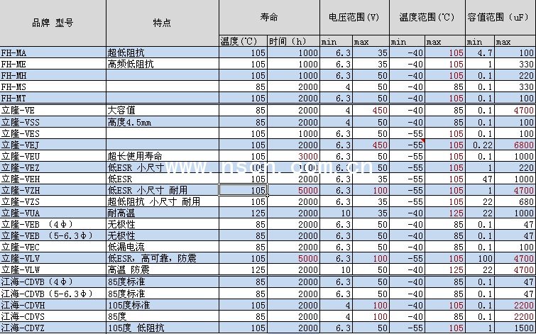 風華、立隆、江海貼片鋁電解全系列參數(shù)總覽