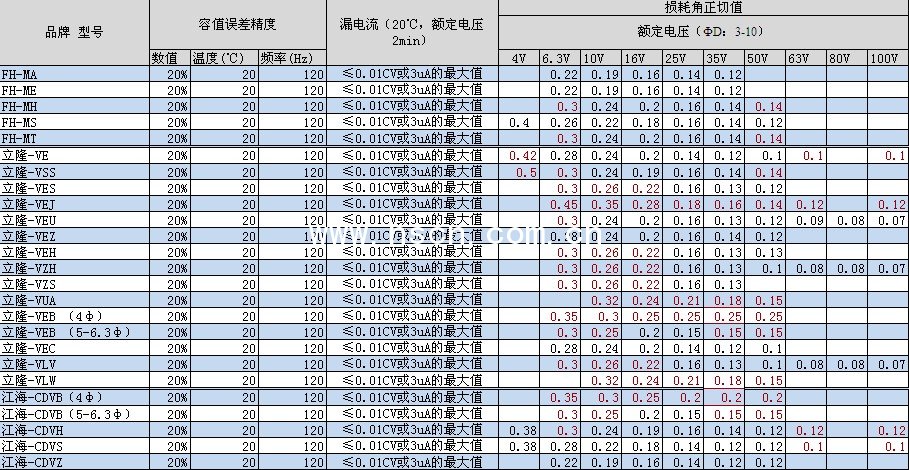 而江海與風華的功能上比較偏標準化,特殊的規(guī)格并不多見,也因為這樣,江海與風華電容的損耗正切值相對力隆較小。
