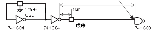 我們將兩個磁珠分別放在如下的20MHz的信號線上,看看對信號輸出會產(chǎn)生什么樣的影響。