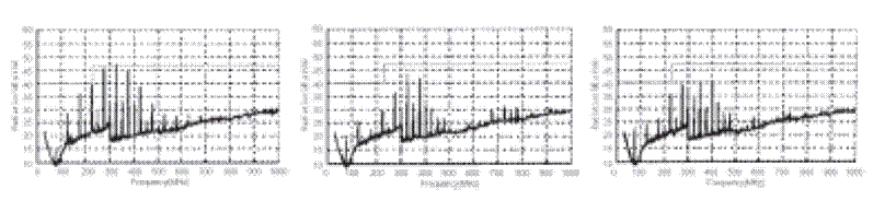 下面是上述三種情況對應的EMI測試結果。結果是磁珠A和磁珠B都會對EMI噪聲產(chǎn)生很大的衰減。磁珠A在整個EMI頻譜范圍內(nèi)的衰減要稍好于磁珠B。