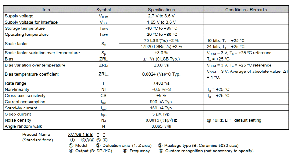 大家好,今天給大家來介紹一款用于自動化機器的數(shù)字輸出型陀螺儀傳感器XV7081BB。這款新推出的陀螺儀XV7081BB到底有什么魅力呢?我們可以用常用款用于智能割草機的XV7011BB作對比:XV7081BB提供16位或24位分辨率的角速率輸出,速率范圍為±400°/s。而XV7011BB采用16位角速度輸出,檢測范圍為±100°/s。這么一比較差距就出來了,而且XV7081BB具有出色的偏置溫度系數(shù),典型值0.0024(°/s)/℃;較低的角度隨機游走:典型值0.065°/√h,電流消耗典型值僅900μA。提供SPI或I2C串行接口。XV7081BB還具有集成用戶可選的數(shù)字濾波器,內嵌溫度傳感器。下面南山電子就給大家分享下XV7081BB的詳細參數(shù),以供大家選型參考:
